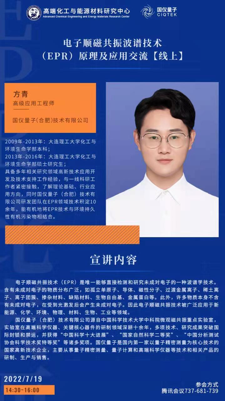 电子顺磁共振技术(EPR)是唯一能够直接检测和研究未成对电子的一种波谱学技术。含有未成对电子的物质分布广泛,如孤立单原子、导体、磁性分子、过渡金属离子、稀土离子、离子团簇、掺杂材料、缺陷材料、生物自由基、金属蛋白等。此外,许多物质本身不含有未成对电子,在受到光激发后会产生未成对电子。因此电子顺磁共振技术被广泛应用于新能源、化学、环境、物理、材料、生物、工业等领域。