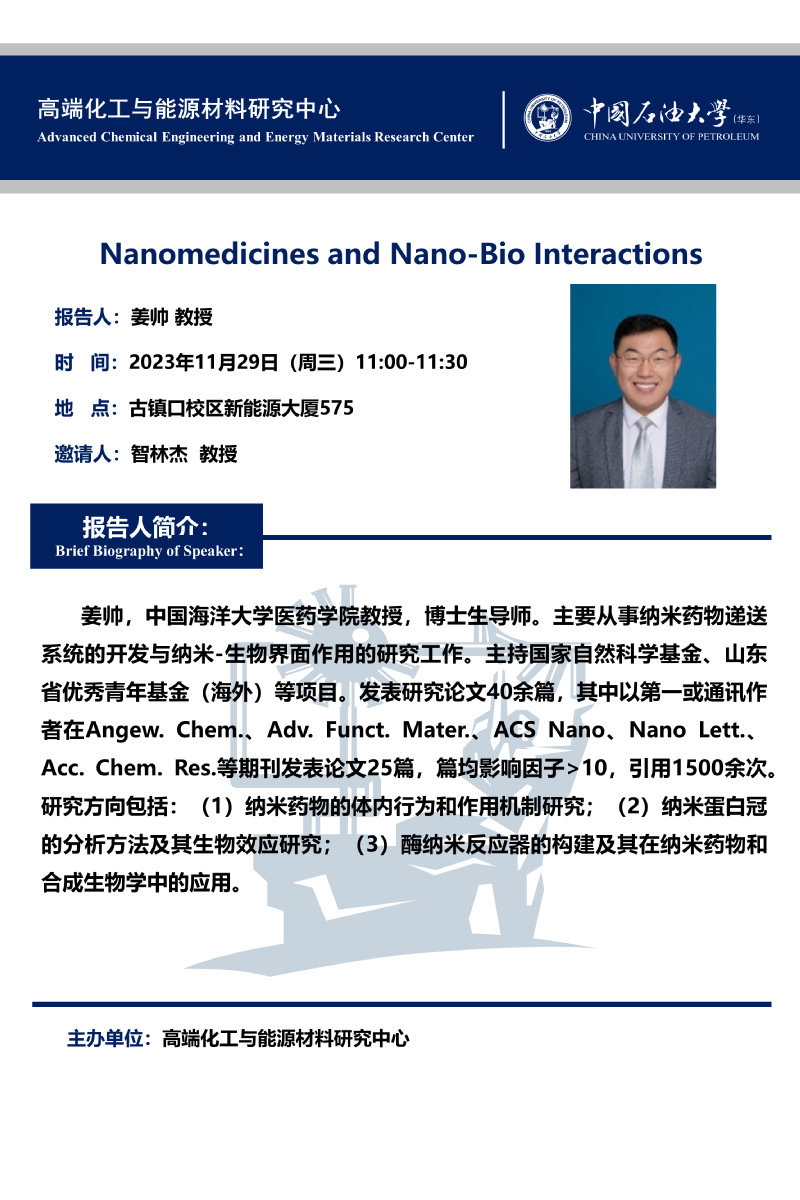 学术预告--中国海洋大学医药学院姜帅教授、德国马普学会高分子研究所Manfred教授