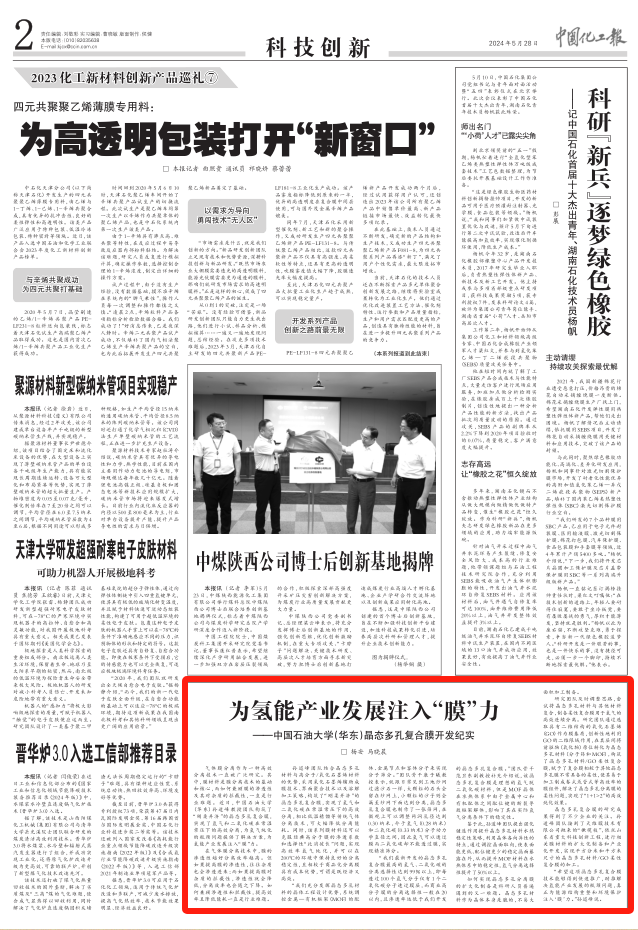 “希望这项晶态多孔复合膜技术能够得到快速推广,助推解决氢能产业发展的瓶颈问题,真正为能源结构重整和环境保护 注入‘膜’力。”孙道峰说。