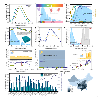 全球气候变化和城市化加速进程导致了严重的能源、环境和安全问题。低碳、低能耗的被动辐射冷却技术是解决全球变暖的一种有前景的热管理策略,近年来受到广泛关注。赵海波教授团队提出了一种基于生物质本征光致发光辐射制冷新策略,发展了具有高太阳光反射率、可大规模制备、可循环利用的全生物质辐射冷却气凝胶。