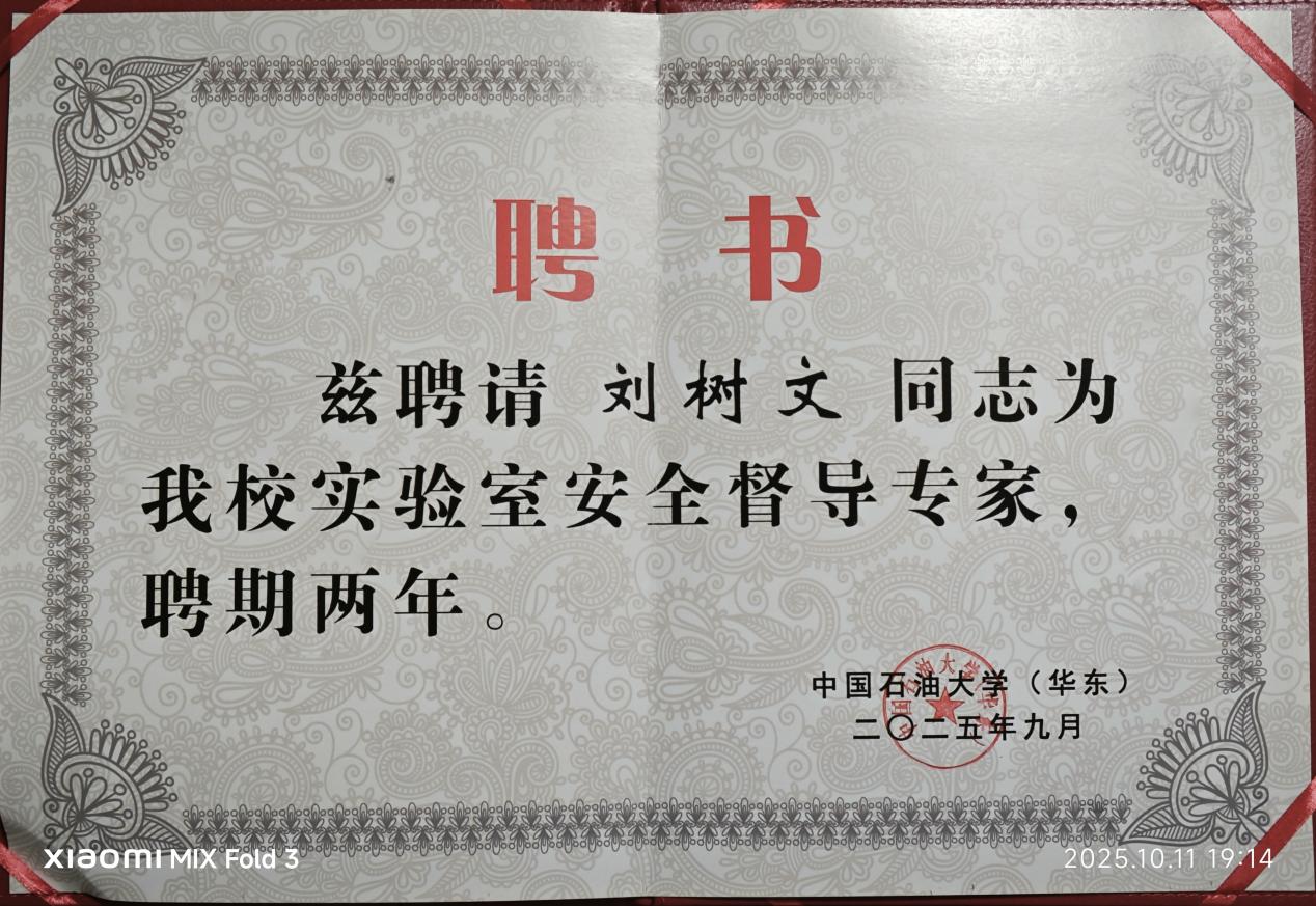 9月9日,学校举行庆祝第41个教师节暨2024-2025学年教职工荣休仪式。会上,高端化工与能源材料研究中心退休老师刘树文被聘为学校实验室安全督导专家。