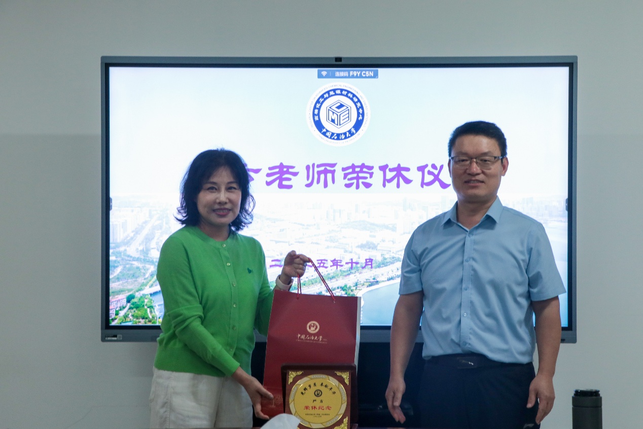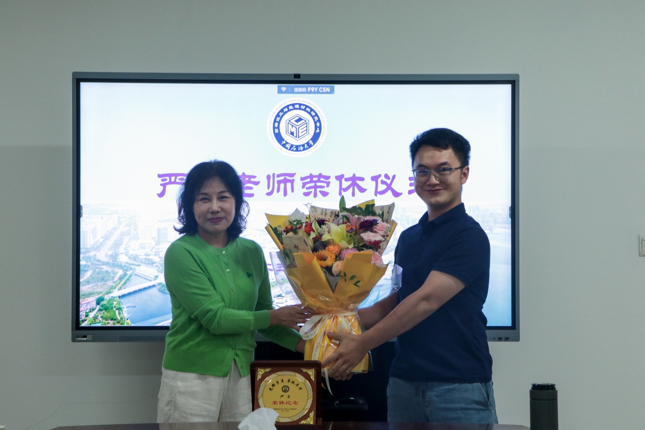 会上,智林杰主任为严方老师颁发荣休纪念牌,颁发技术专家聘任证书;董成立副主任为严方老师赠送纪念品;李运运代表青年老师代表为严方老师赠送鲜花。