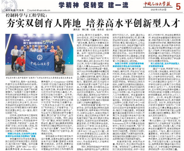 夯实“一主线、两保障”双创育人体系,注重内涵建设,持续推动创新型云开体彩下载官网首页,有力支撑学科专业发展。五年来,学生获省级及以上双创竞赛奖励595项(其中国家级227项)。“三大赛”获省级以上奖励64项(国家级18项、金奖2项),RoboMaster机甲大师战队享誉全国,最佳成绩全国第五,3次荣获全国一等奖。学院获评“创新创业优秀组织单位”、“首批教学院部创新创业教育中心试点建设单位”,1名学生获“中国青少年科技创新奖”(全校唯一)。