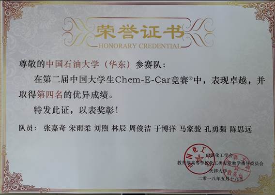 2019-05-13 2019中国大学生Chem-E-Car竞赛我院学生获佳绩