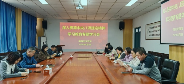 本次专题学习会采取集中学习和交流研讨相结合的方式进行。与会教职工原原本本研读了《习近平关于加强党的作风建设论述摘编》《中央八项规定》和《中央八项规定实施细则》,并结合工作实际谈认识谈体会。大家纷纷表示,将坚定不移地维护党中央权威,牢固树立“四个意识”,坚定“四个自信”,坚决做到“两个维护”,进一步提高贯彻落实中央八项规定精神的自觉性和主动性,以更加严格的标准、更加严谨的态度,坚定不移地将中央八项规定精神落到实处,做到持之以恒、常抓不懈,以实际行动为学院各项事业保驾护航。随后,与会教职工共同观看了专题片《永远吹冲锋号》第三集《铁规矩硬杠杠》。