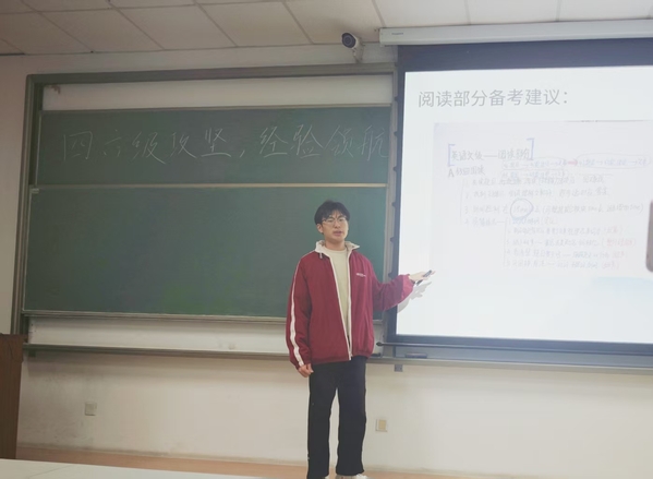 为助力同学们高效备战大学英语四六级考试,12月5日晚,学院四六级励学班正式开课。在此次课程中,特邀英语学习及跨文化交流协会23届会长及高分通过四六级的王子懿担任主讲,为现场同学带来针对性极强的备考指导。