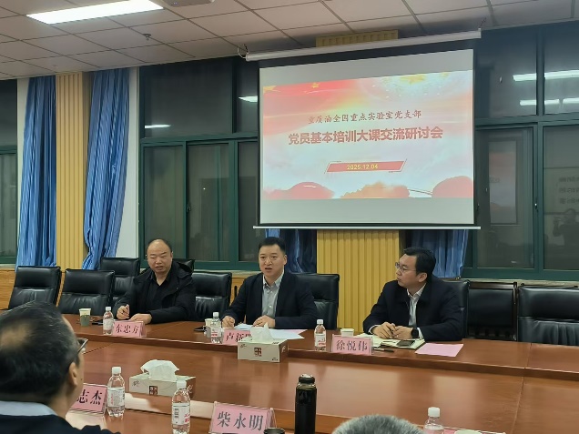 2025年12月4日,重质油全国重点实验室党支部在工科A121会议室召开党员基本培训大课交流研讨会。会议由党支部书记柴永明主持,学院党委书记郝志杰、学校党委常委和党办校办主任徐悦伟、青岛理工大学党委常委、组织部部长卢新明和青岛理工大学组织部副部长东忠方出席,重质油全国重点实验室党支部全体成员参加。