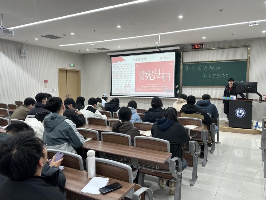 化研2302班开展国家宪法日法治教育主题班会。引导学生深刻理解宪法作为国家根本大法的地位和作用,12月17日,化研2302班于综合楼007A举办尊崇宪法权威,法治护航成长主题班会。活动包括发展背景,法律案例分析,启示与思考为主要内容,使成员在活动中增强法治观念,提升运用法律思维分析和解决问题的能力,争做社会主义法治的忠实崇尚者、自觉遵守者和坚定捍卫者。活动在班长组织下有序进行。班会从国家宪法日的设立背景讲起,回顾了自1982年现行宪法颁布至2014年正式设立国家宪法日的重要历程,阐释了依宪治国、依宪执政的时代内涵。随后,通过一则“高中生网络欺凌”的真实情境案例,剖析了言行背后的法律边界——宪法保障的人格尊严、民法典维护的个人权利、治安管理处罚法与刑法中的责任规定,使抽象法律条文转化为具体行为指引。同学们在讨论中深刻认识到,宪法并非遥远文本,而是贯穿于日常生活的保护力量。最后的启示部分强调,国家宪法日不仅是纪念,更是教育、普及与深化。它提醒每一位公民,尤其是青年学生,将宪法精神内化于心、外化于行,自觉成为社会主义法治的忠实崇尚者、自觉遵守者与坚定捍卫者。