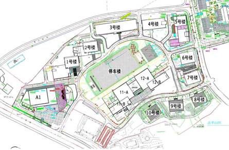 青岛软件园内建有12栋写字楼和1栋中心停车楼,其中A1栋楼为市南区政府使用,1至10号楼作为研发楼作为园区招商引资落户企业使用,11、12号楼作为综合楼,主要集中园区配套餐厅、酒店、服务中心使用。