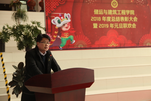 数九寒天人心暖,一家欢聚情意浓。伴随着冬日里温暖的阳光,2018年走到了岁末年尾,2019年元旦如约而至。为总结学院一年来的工作,表彰先进、树立典型,激励全院教职工奋发向上、开拓创新,储运与建筑工程学院于12月27日在工科楼D座大厅隆重举行2018年度总结表彰大会暨2019年元旦联欢会。副校长姚军、校工会主席张军、信控学院党委书记李心市、机电工程学院党委书记李海林、档案馆馆长牛庆玮、规划处副处长张旭东等领导、院友和退休老同志应邀出席。