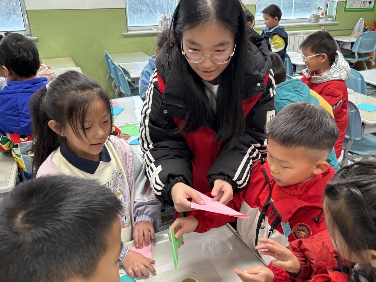 为传承中华优秀传统文化,推动非物质文化在学生中的普及与体验,学院召旭服务队于12月5日走进昆仑山路小学,举办了一场别开生面的“彩绳钟楼”非遗手工制作活动。本次活动是“非遗进校园”系列的重要组成部分,通过理论讲解与动手实践相结合的方式,让小学生在亲身体验中感受传统建筑文化与手工艺术的融合,增强文化认同与时间观念。