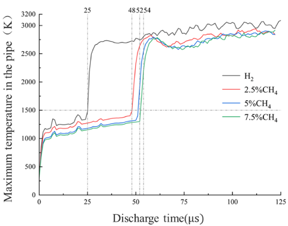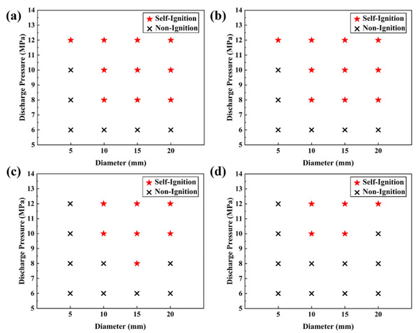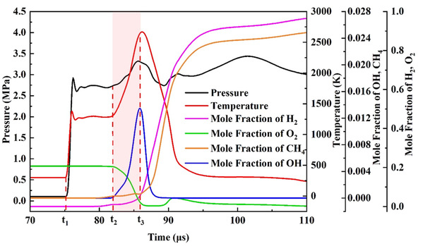 为深入理解甲烷在高压力氢泄漏中的抑制机制,本研究进一步探讨了释放压力与管道直径对甲烷抑制效果的影响。研究发现,甲烷的抑制效果对高释放压力和低甲烷浓度更为敏感;管道直径的影响则呈现非线性特征,直径过大或过小均会减弱甲烷的抑制效果。甲烷通过降低混合气体的声速、减弱冲击波强度、延缓气体混合与温升过程,综合抑制自燃发生。研究结果为高压力氢-甲烷混合系统的安全调控与防护设计提供了理论支撑。