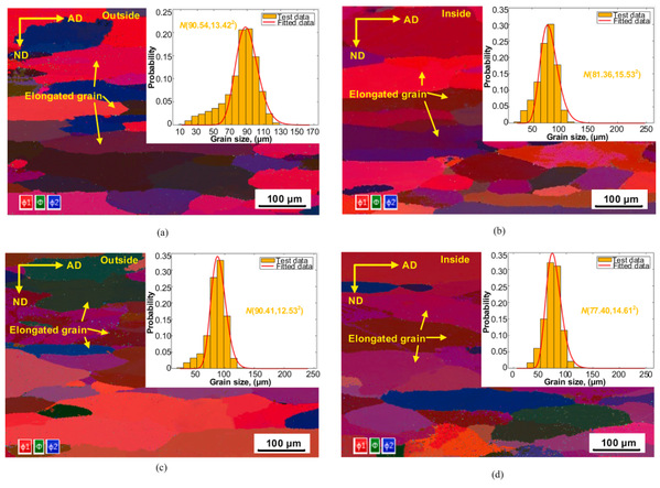 为解决以上问题,提出了一种双非对称式对轮主动旋压新工艺,它通过更加一致的内外旋轮接触情况和内外壁材料流动提升了筒形件径向应变均匀性。构建了内外旋压结构和工艺参数对接触情况的影响和导向关系的理论解析模型,建立了这些参数耦合影响下的Kriging代理模型,获得了多目标粒子群算法(MOPSO)在全局内连续变量寻优的旋压参数,该工艺基本上消除了传统旋压件的径向应变梯度效应。在自主研制的对轮主动强力旋压设备上开展的试验结果表明,新工艺因高径向应变均匀性特点而形成了更加均衡的成形精度、内外表面晶粒尺寸、织构强度和各向同性力学性能。这为改进对轮旋压工艺方法和提升成形质量提供了重要的指导。