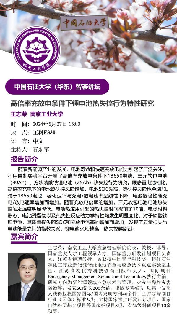 【智荟讲坛(第八期)】高倍率充放电条件下锂电池热失控行为特性研究