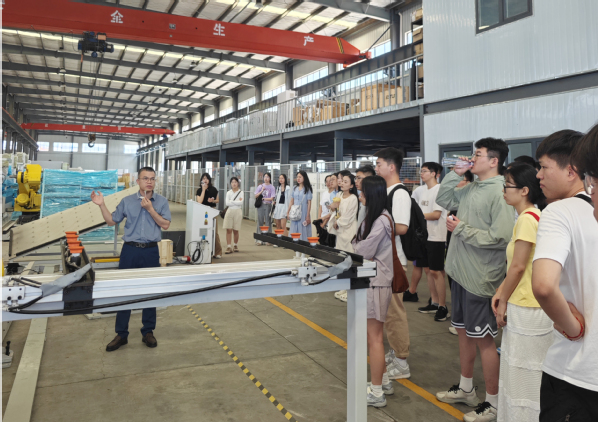 在青岛大东自动化科技有限公司,学子们参观公司的智能化生产车间,详细了解了该公司的发展历程、生产流程以及技术创新硕果,并现场观看数控激光切割、柔性折弯机技术操作演示,深入体会其自主研发设计的各种自动化设备的设计理念及用途。