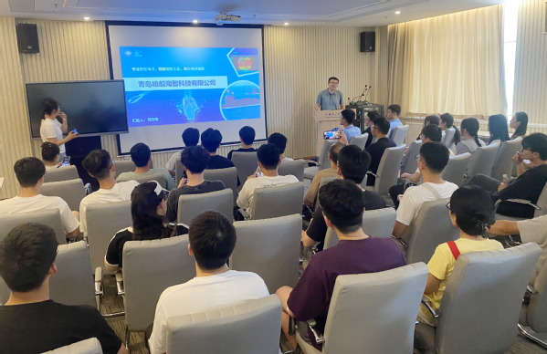 随后,在青岛哈船海智科技有限公司,业务中心主任刘万寿带领学子们参观公司的工作区及产品区,展示公司海洋环境大数据平台、海洋环境多维可视化平台、海洋环境智能分析预报系统等在内的众多产品,让学子们现场感受不同仪器设备在研发中的实际应用。