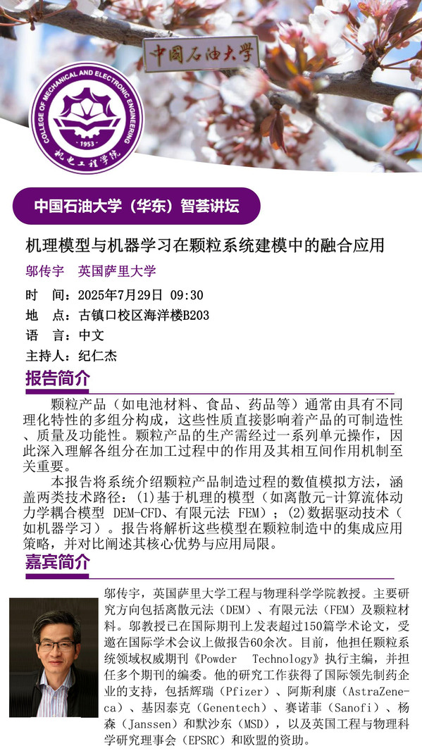 【智荟讲坛(第二十二期)】机理模型与机器学习在颗粒系统建模中的融合应用