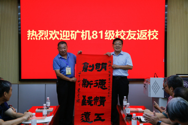 10日下午,机电工程学院于工科楼E330举办矿机81级校友毕业四十周年座谈会,20余位校友围绕求学经历回顾与学院发展建设展开交流。学院原党委书记李海林、副院长刘伟出席座谈会。校友代表向学院捐赠字画,表达对母院的美好祝福。