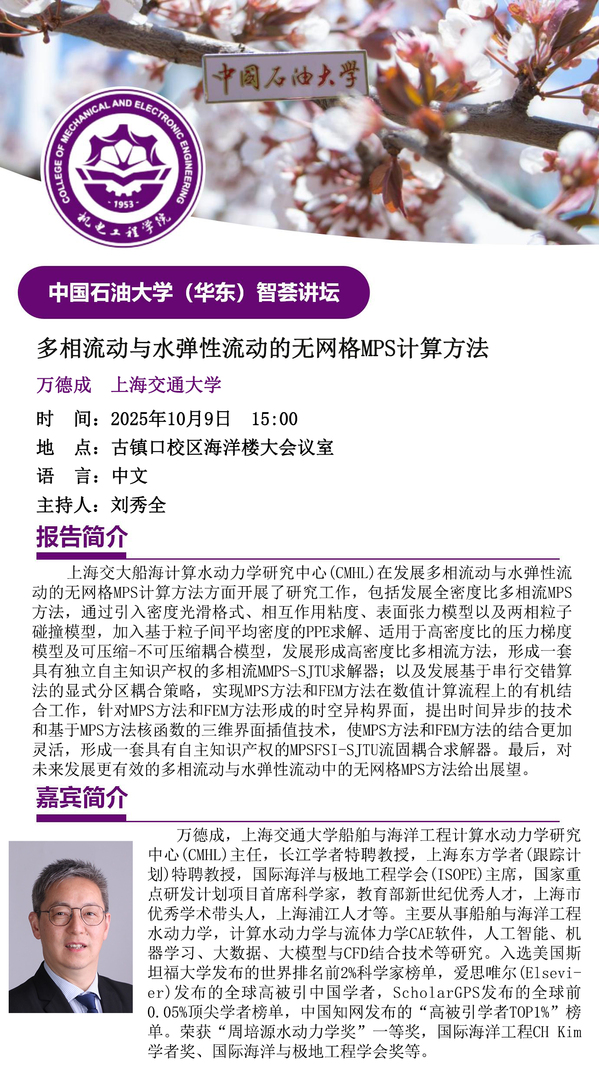 【智荟讲坛(第二十四期)】多相流动与水弹性流动的无网格MPS计算方法