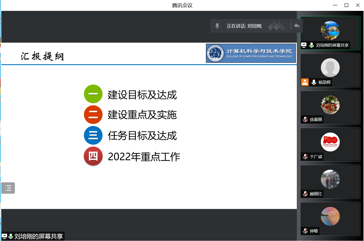 根据学校年度教学工作安排,计算机应用技术系于2022年3月19日上午线上召开大学计算机课程建设总结汇报及年度工作计划研讨会,会议由系教学主任杨劭辉主持,学院副院长李华昱听取汇报,系全体教师参加学习研讨。