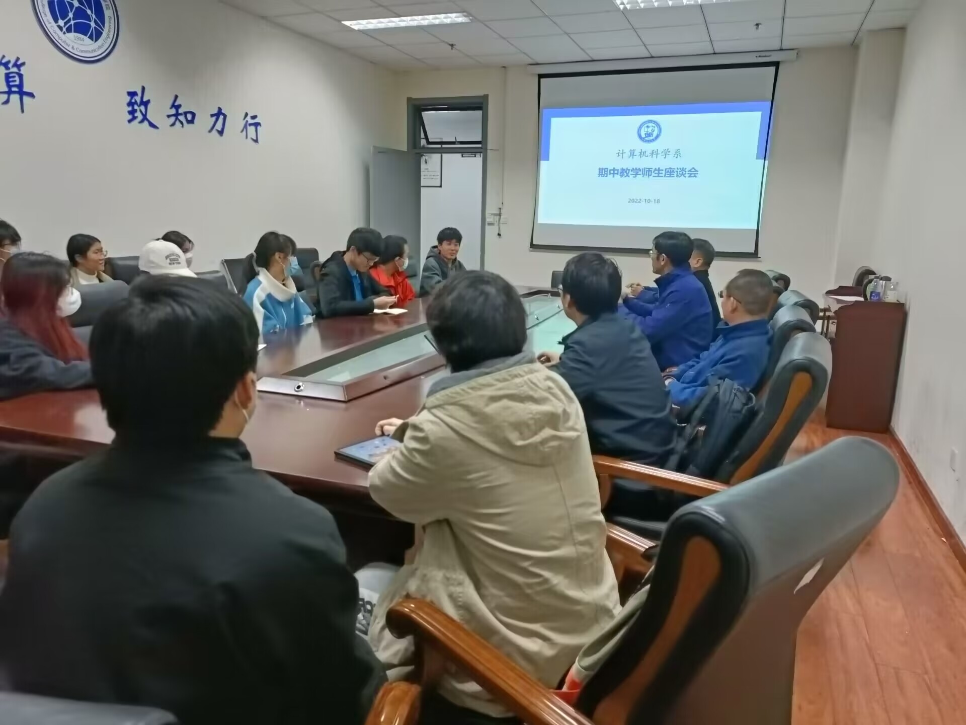 10月18日晚上,计算机科学系师生代表在工科E1011会议室召开教学工作期中座谈会,此次座谈会目的在于了解学生在上半学期学习中遇到的问题和困难,广泛听取学生对教学工作的意见和建议,进一步规范教学管理,提高本科教学质量。计算机科学系班子成员和教师代表龚安老师、宋继志老师以及计算机专业和物联网专业各年级学生代表参加了此次会议。各班代表在会上发言,反映了上半学年各班学生上课出勤、听课情况。对于选修课选课、保研政策、考研就业、实习实践、第二课堂、线上教学等方面遇到的问题和疑惑与教师进行了深入交流。