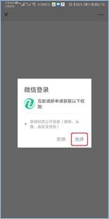 1.使用微信扫描识别网络问卷二维码,弹出“微信登录界面”,点击“允许”按钮。如图1所示。