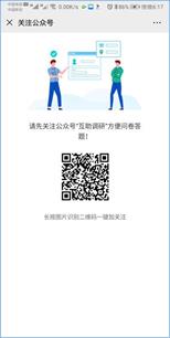 (三)问卷填写。学生在收到问卷二维码后,使用微信扫码(识别图中二维码),关注“互助调研”微信公众号,系统将自动推送网络调查问卷,点击填写即可。具体操作流程如下: