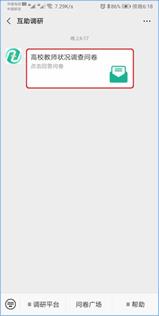 5.进入“互助调研”公众号界面,自动接收到系统推送的网络问卷,点击接收到的网络问卷。如图5所示。