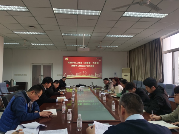 2024年3月14日下午,党委学生工作部(武装部)党支部在学工会议室开展集体学习并进行民主评议党员。会议由支部副书记周世光主持,部门全体成员参会。
