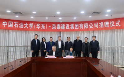 荣泰集团向学校捐赠1000万元。吴强明代表学校接受捐赠,并向薛鹏颁发捐赠证书。王洪与王效美代表双方签署捐赠协议。