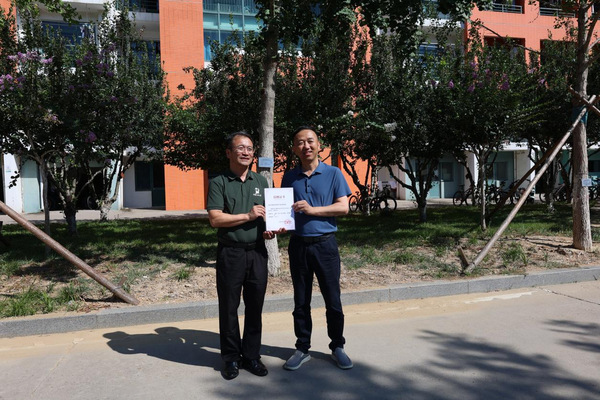胡义贵向校友回赠捐赠证书