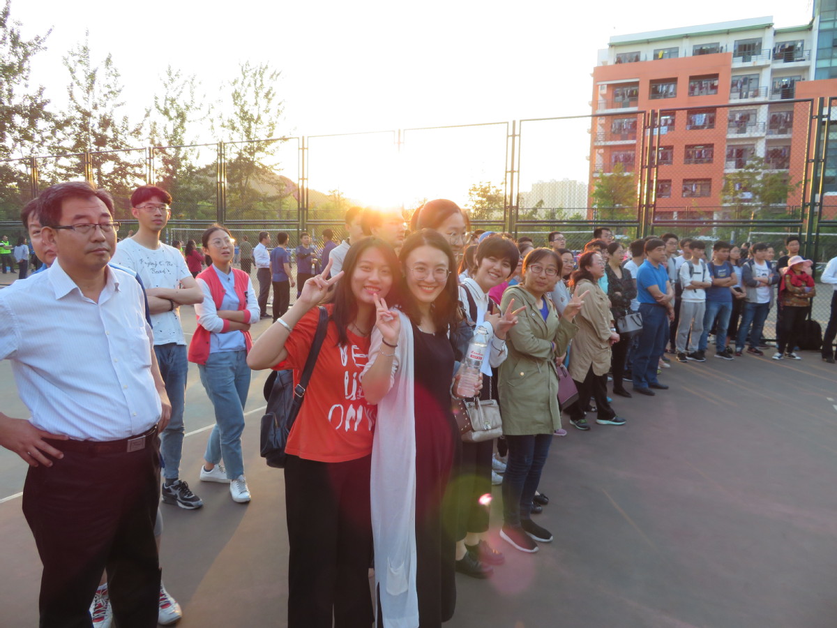 齐心合力,加油!后面站着的是“铁杆球迷”任怀强老师!