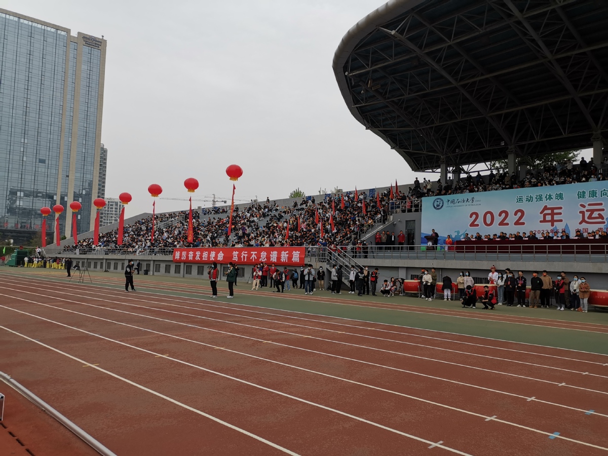 今年辅导员组织得好!地院是看台上旗帜飘扬的唯一学院!看主席台北侧!