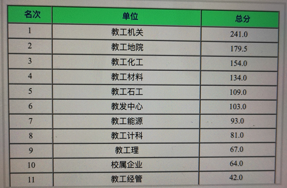 运动会20个参赛单位成绩单,有些单位很难看,低的只有几分。