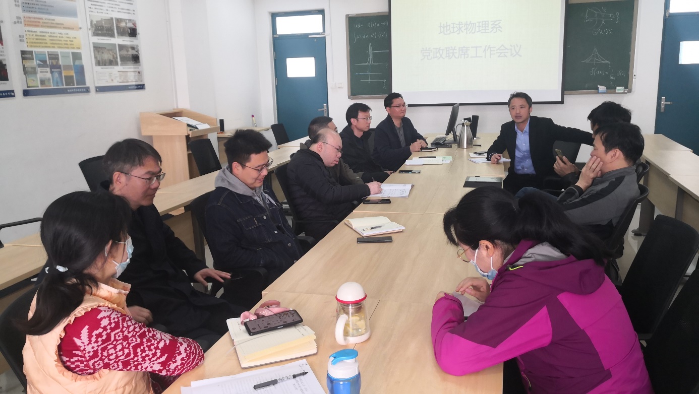 根据学校及学院近期工作安排,地球物理系于4月12日召开党政联席会议,系主任曹丹平和支部书记张凯共同主持,学院团委书记王立禾及系行政班子、支部委员参加席会议。