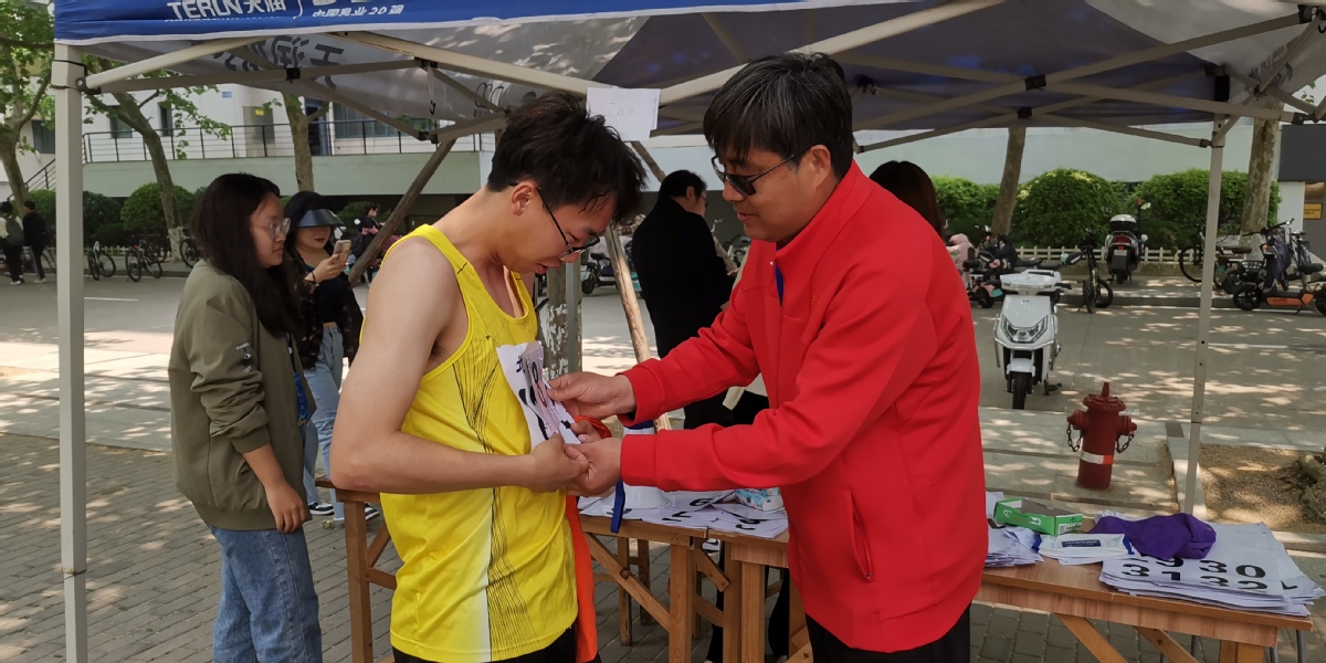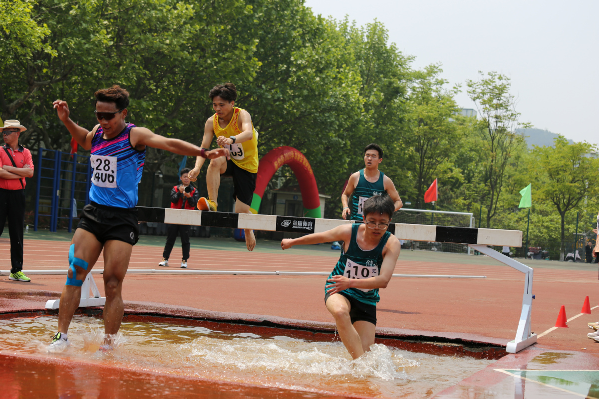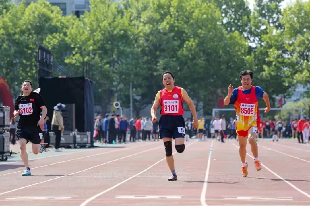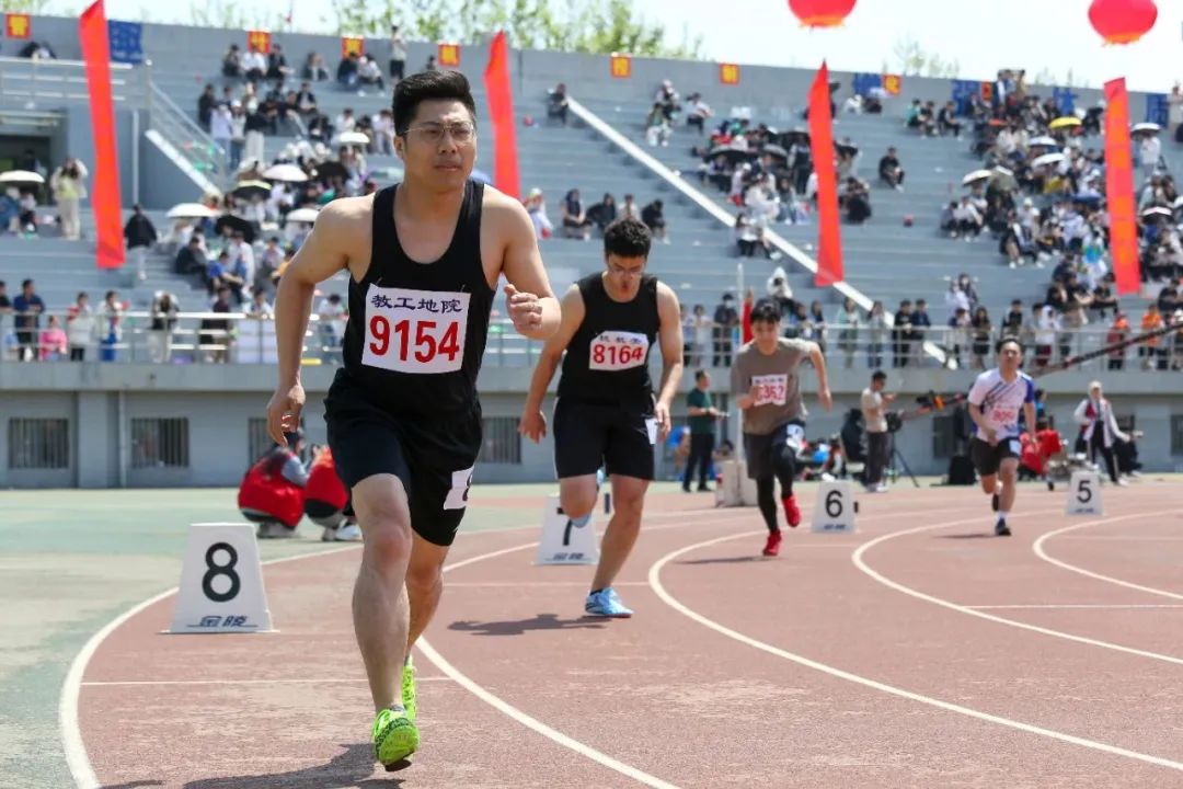 张军华在最后冲刺,最后10米连追3人才拿到1500第四,都是在拼老命。下午3:08比赛,为了提前预热,中午1:50分让研究生陪着打了半个小时乒乓球,今年总算腿没有拉伤,预热确实必要!(校工会网照片)