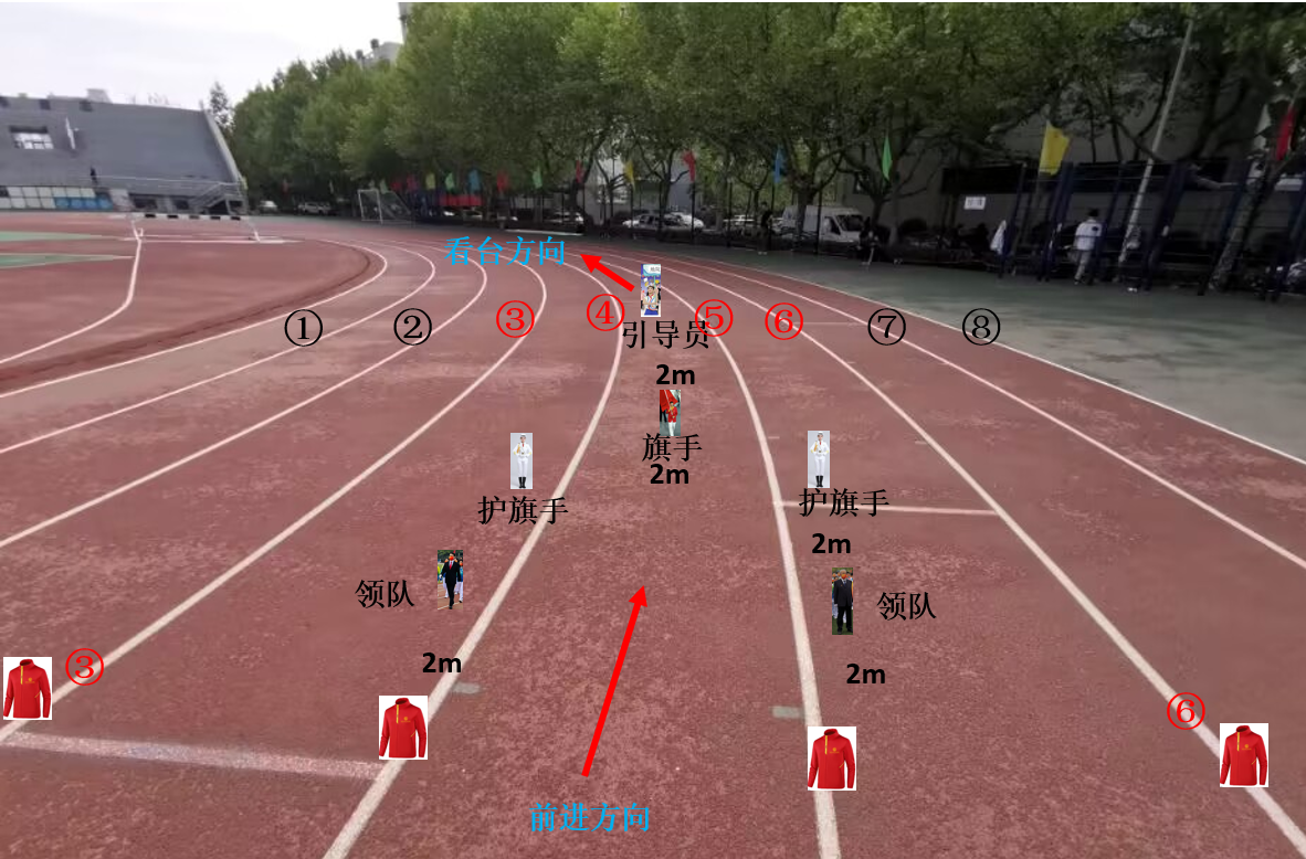 为了走好仪仗队,我搞了一个模板,提供给校工会,领队会采用了本方案。