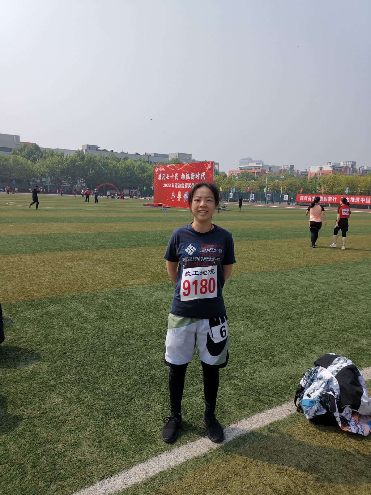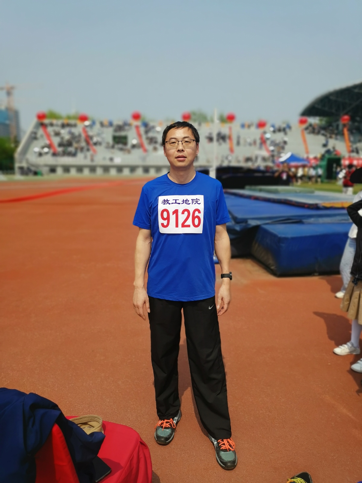 远二辉孩子都带上号码布了!远二辉100、200、接力都是主力,还是去年篮球赛冠军成员,为了学院体育工作做出了很大贡献,去年被授予校优秀工会会员,这是科研助理里不多的。