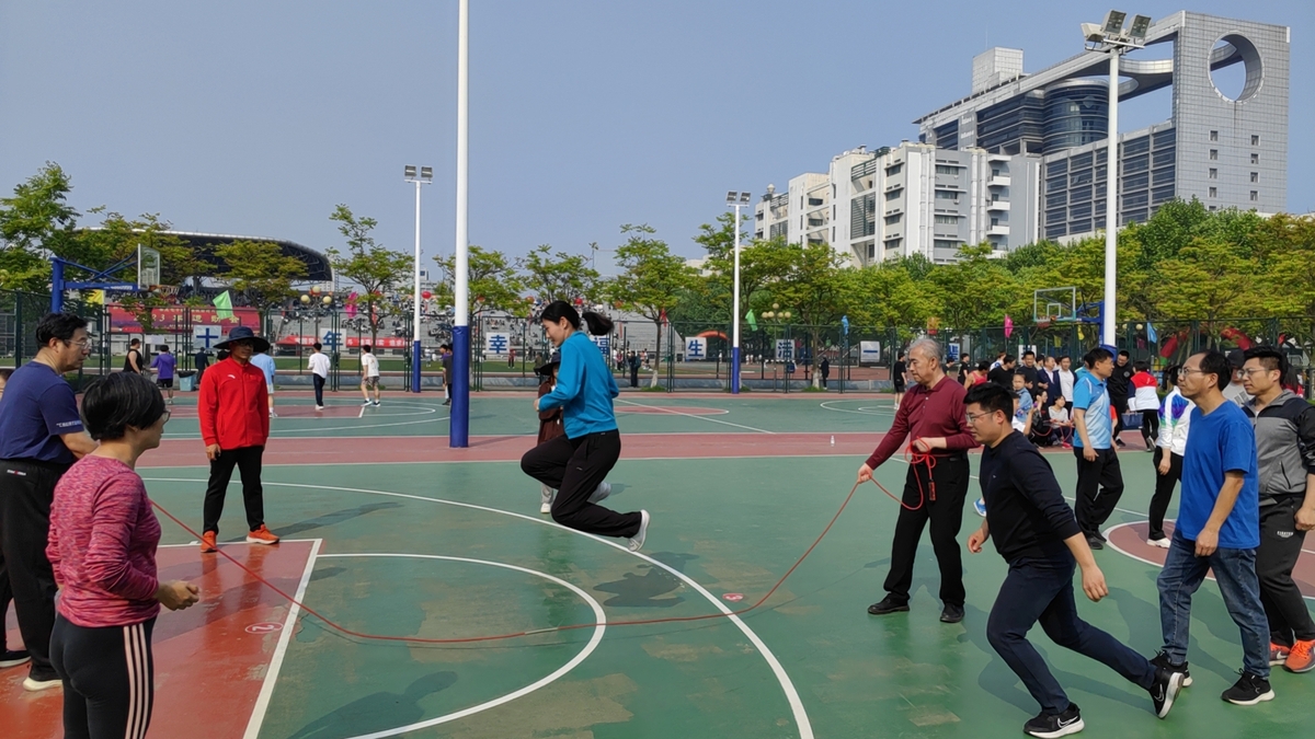 书记亲自摇绳(本照片取自校工会网)