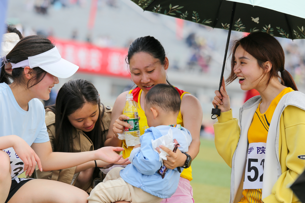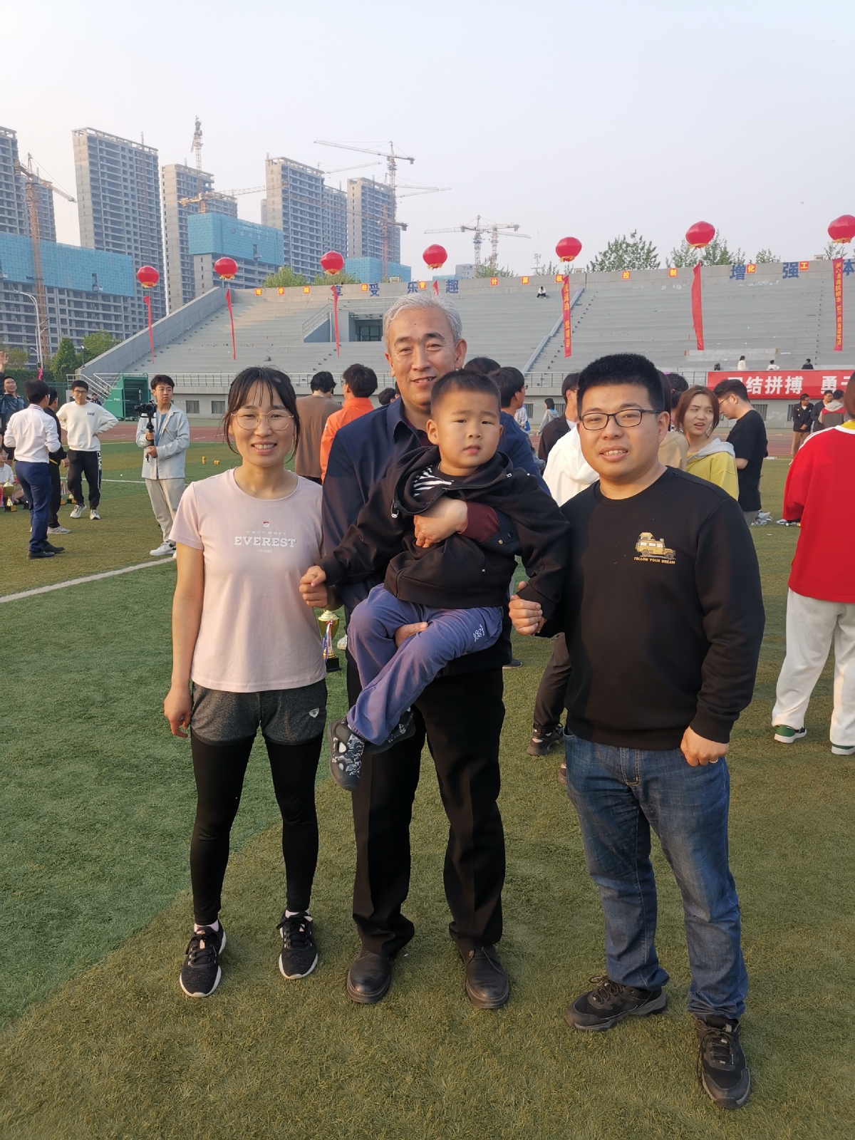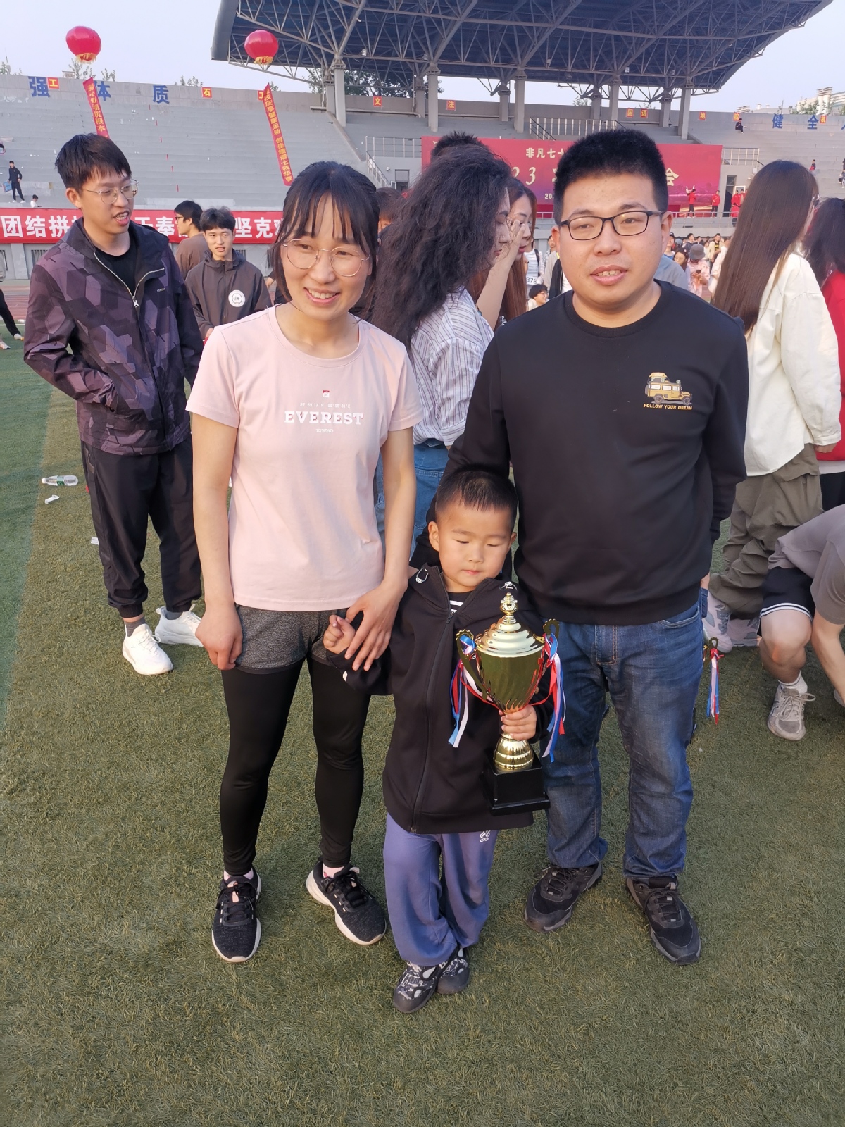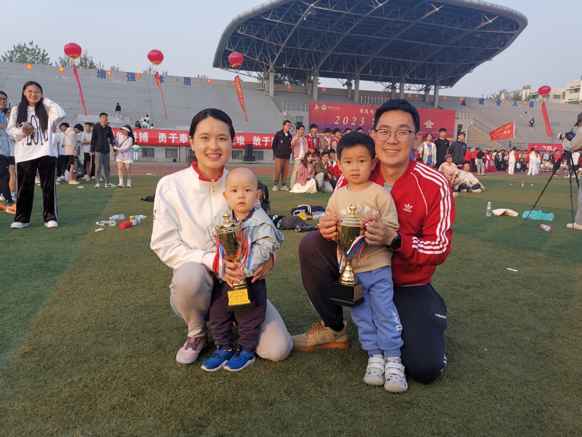 宋优今年后勤服务到位,接力也非常好,丈夫、两个孩子也来加油了!