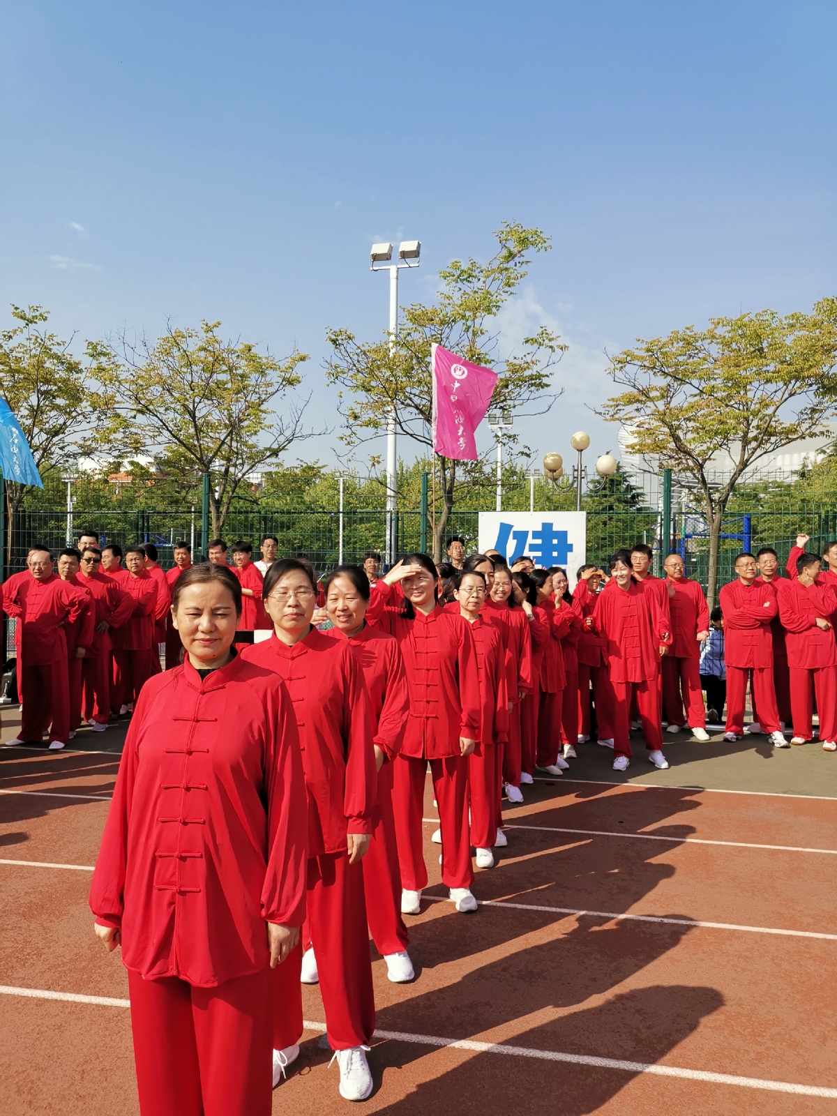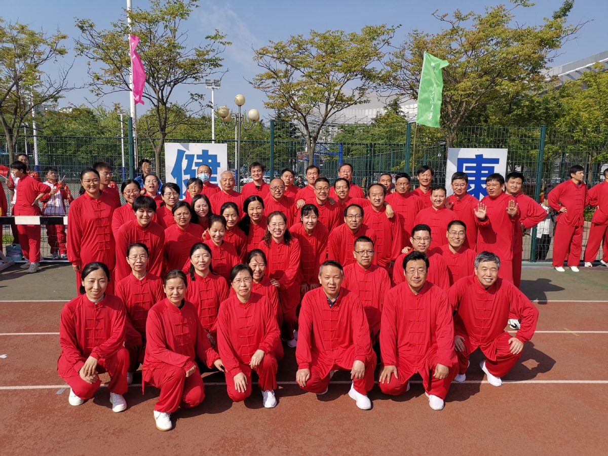 今年参加太极拳比赛学院上场人员正好46人。我们合影背后两个字很好!