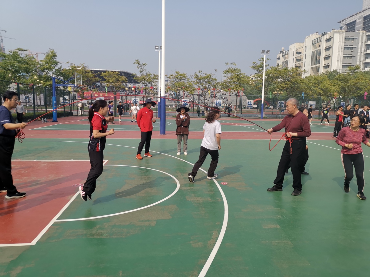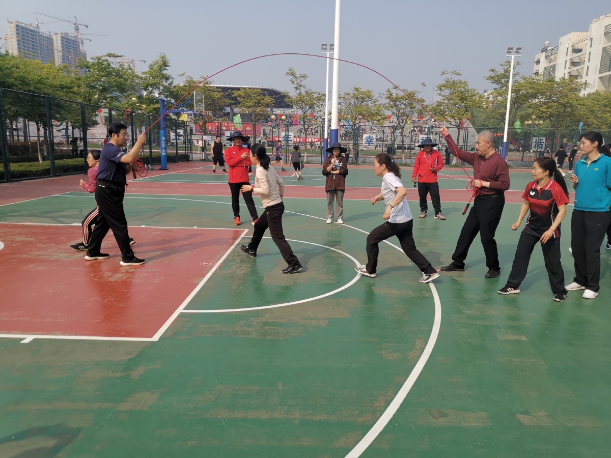 趣味运动会8字跳绳合影,比了两次,不容易!