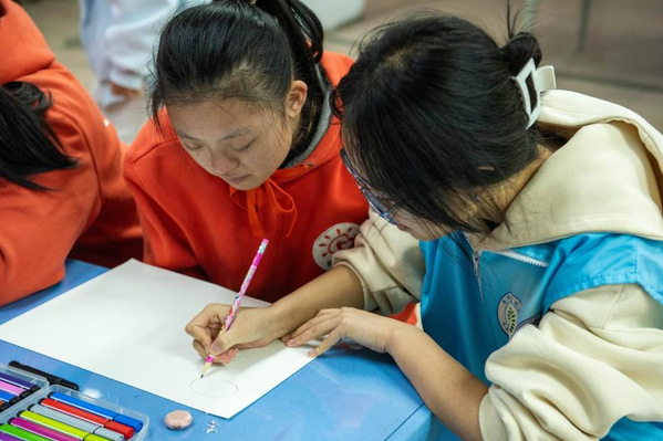 协助大龄自闭症患者通过绘画进行情感表达 孔宇昂摄