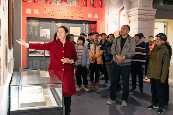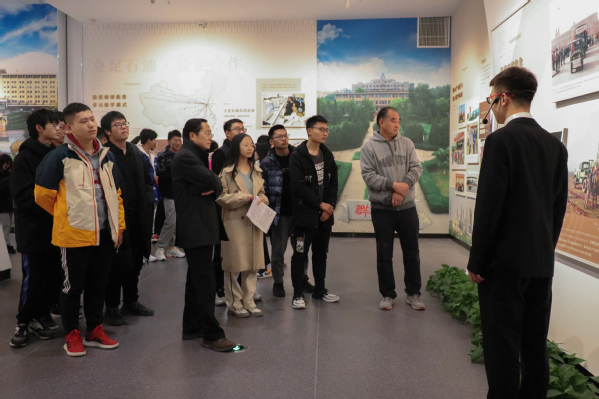 本次参观学习在校史馆讲解员生动的讲解下,参观师生详细了解了编年体展厅、石油精神专题展厅、艺术馆。展厅综合采用现代信息技术和视觉美学,通过图文、实物、多媒体、虚拟影像、立体造型、场景还原等多种方式对学校不同历史阶段进行了场景还原,引起众多师生的回忆和共鸣。随后,教师代表为校史馆留字纪念。