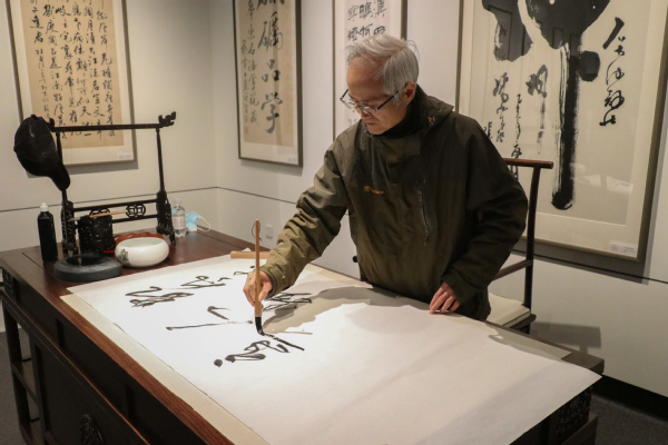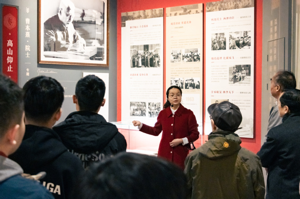为迎接建校七十周年书画展览展开学习创作,2021年12月8日下午,教职工书画院师生前往校史馆参观学习,教职工书画院院长李心市出席活动。