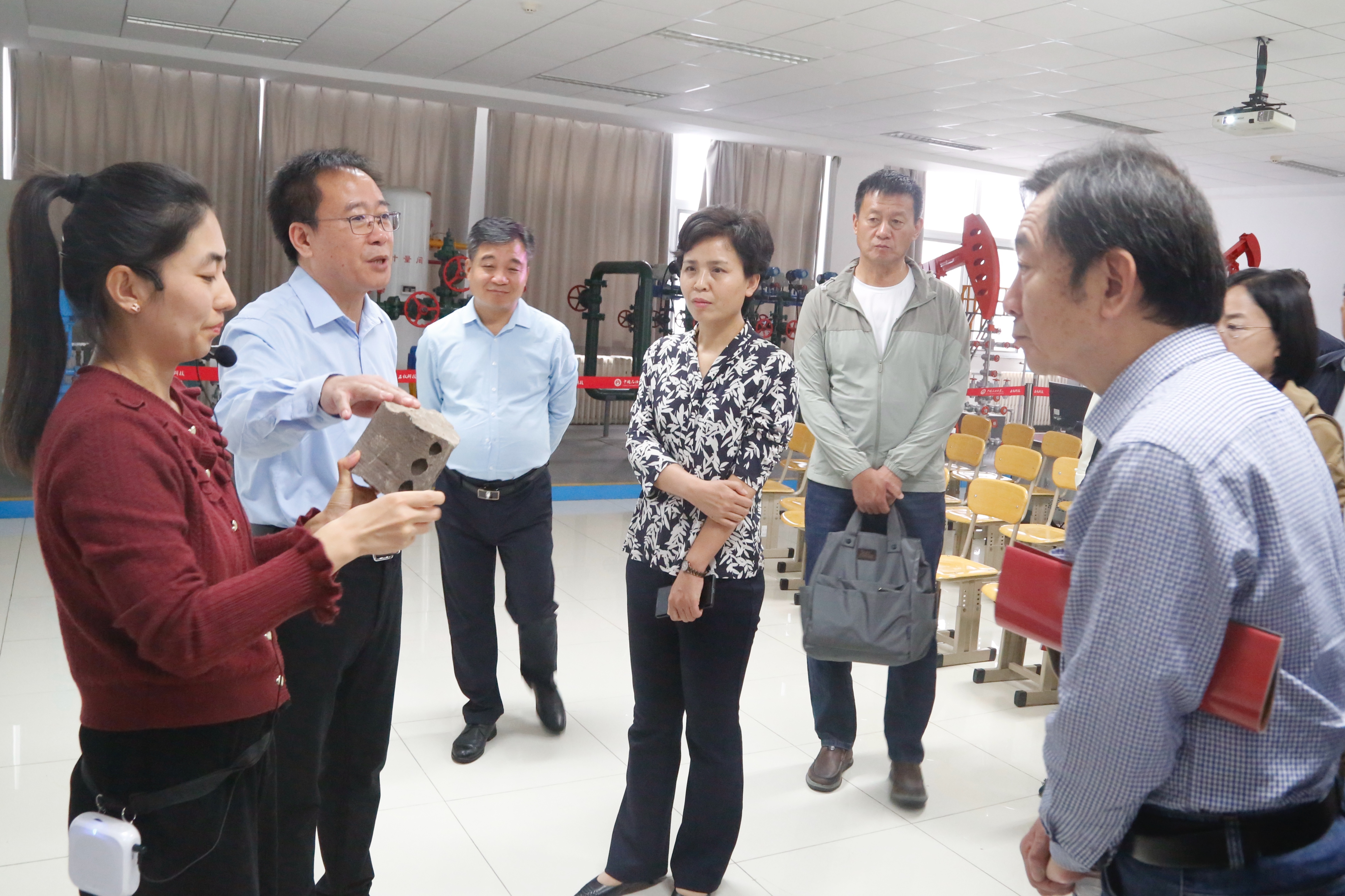 10月16日,全省高校工会干部培训班到我校开展现场教学,100多名学员集体参观石油工业训练中心和校史馆。学校党委副书记万云波会见省教育工会主席王贞一行。