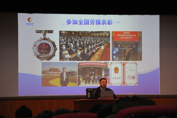 胡克涛,中共党员,全国五一劳动奖章获得者、全国劳动模范,曾经荣获“感动青岛道德模范”、山东省道德模范提名奖。他在报告中与大学生分享了事业成功的经验,以及如何处理工作与家庭的关系。他扎根热电行业38年,勇挑大梁,带领团队啃下60余项“硬骨”,斩获12项专利,用创新之刃开辟行业技术壁垒;他带领的班组先后荣获“青岛市工人先锋号”“青岛市先进班组”等称号,连续六年蝉联集团“星光班组”和“五星级班组”。从父母病床前的昼夜值守到子女成长中寸步相伴,胡克涛双角色零缺位,用牵挂织就比热电事业更绵长的守护,用数十年如一日诠释孝道真谛。