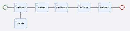 1.研究生申请提交后,系统会按照以下流程流转相关人员审核:“院部教学秘书审核” -> “原导师审核”->“变更后导师审核”->“学院研究生分管副院长审批” -> “研究生院审核”