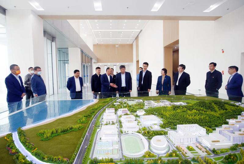 到场领导和来宾观看古镇口校区沙盘 王大勇摄影