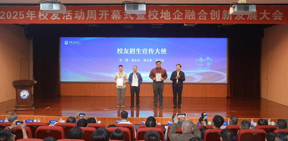 校友总会深圳联络处会长、深圳市显控科技股份有限公司董事长、自动化87级校友宋斌,杭州校友会副秘书长,杭州丰禾石油科技有限公司总经理、应用地球物理97级校友周建文,作为校友代表在大会上发言。宋斌表示,作为校友要传承“惟真惟实”的校训,践行“家国同心、艰苦奋斗、惟真惟实、追求卓越”的石大精神,在各自岗位上发光发热,在实干担当中创出一片事业,为母校早日建成中国特色能源领域世界一流大学注入校友力量。周建文结合工作经历,介绍校友企业与学校协同推动“过套管声波测井技术”实现550万元成果转化、设立奖学金培育行业人才等情况。他倡议深化“校地企”三维联动,搭建校友经济圈形成创新生态,助力“深地工程”等国家战略实施。